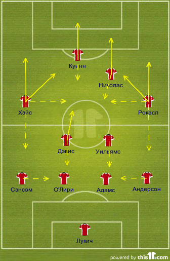 - Так же, как и в схеме 4-4-2, крайние полузащитники отвечали за контратакующие действия, но они же должны были оказывать непосредственную поддержку единственному нападающему.